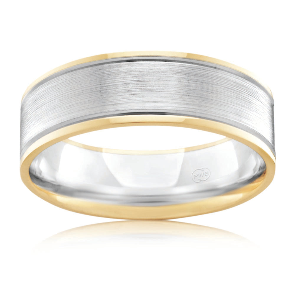 9ct Two Tone Gold 6mm Ring. Size U