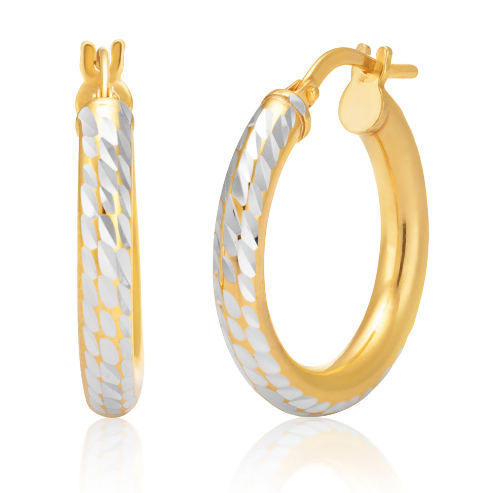 9ct Two-Tone Gold Filled 15mm Diamond Cut Hoop Earrings