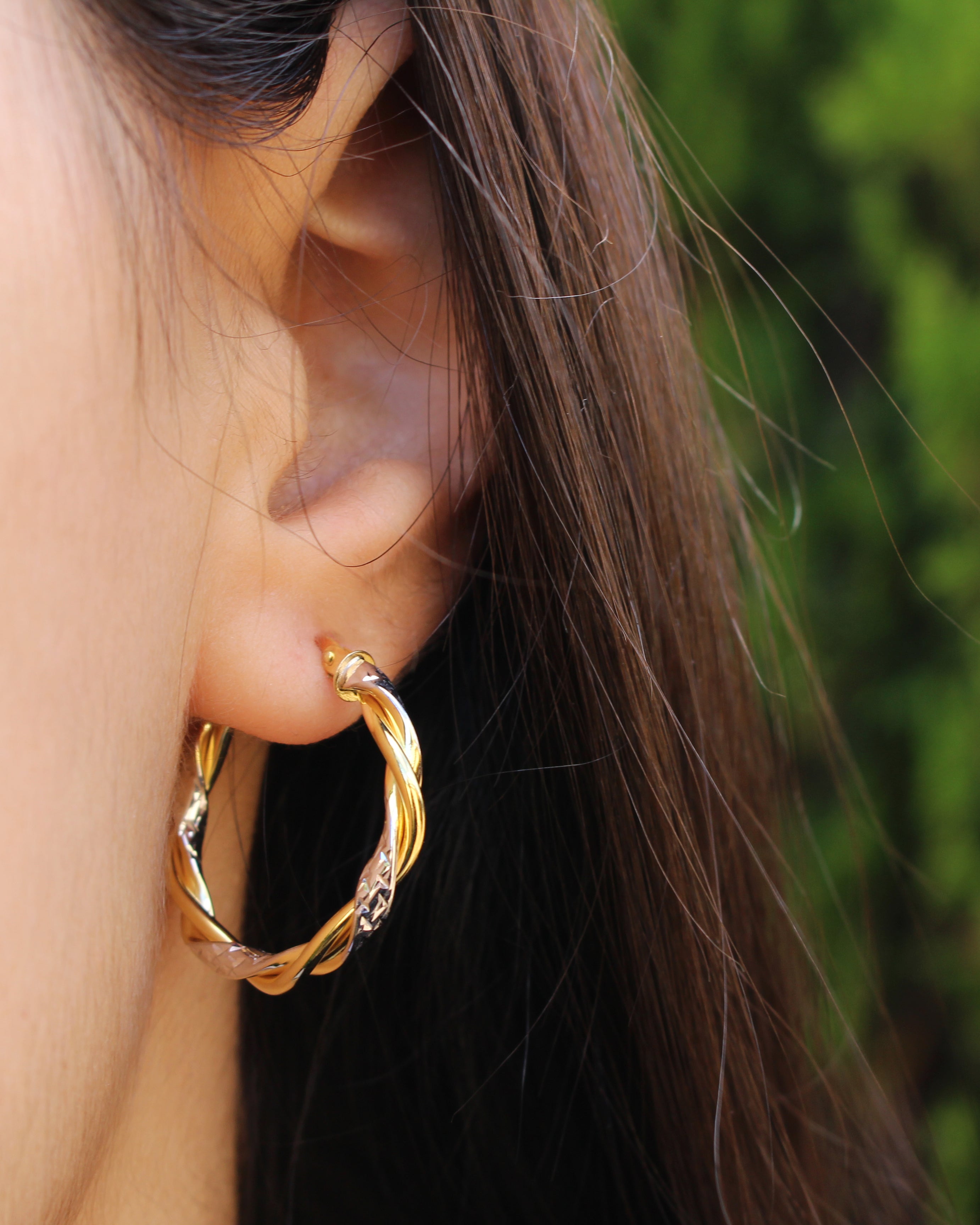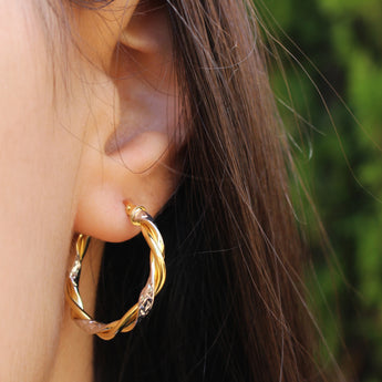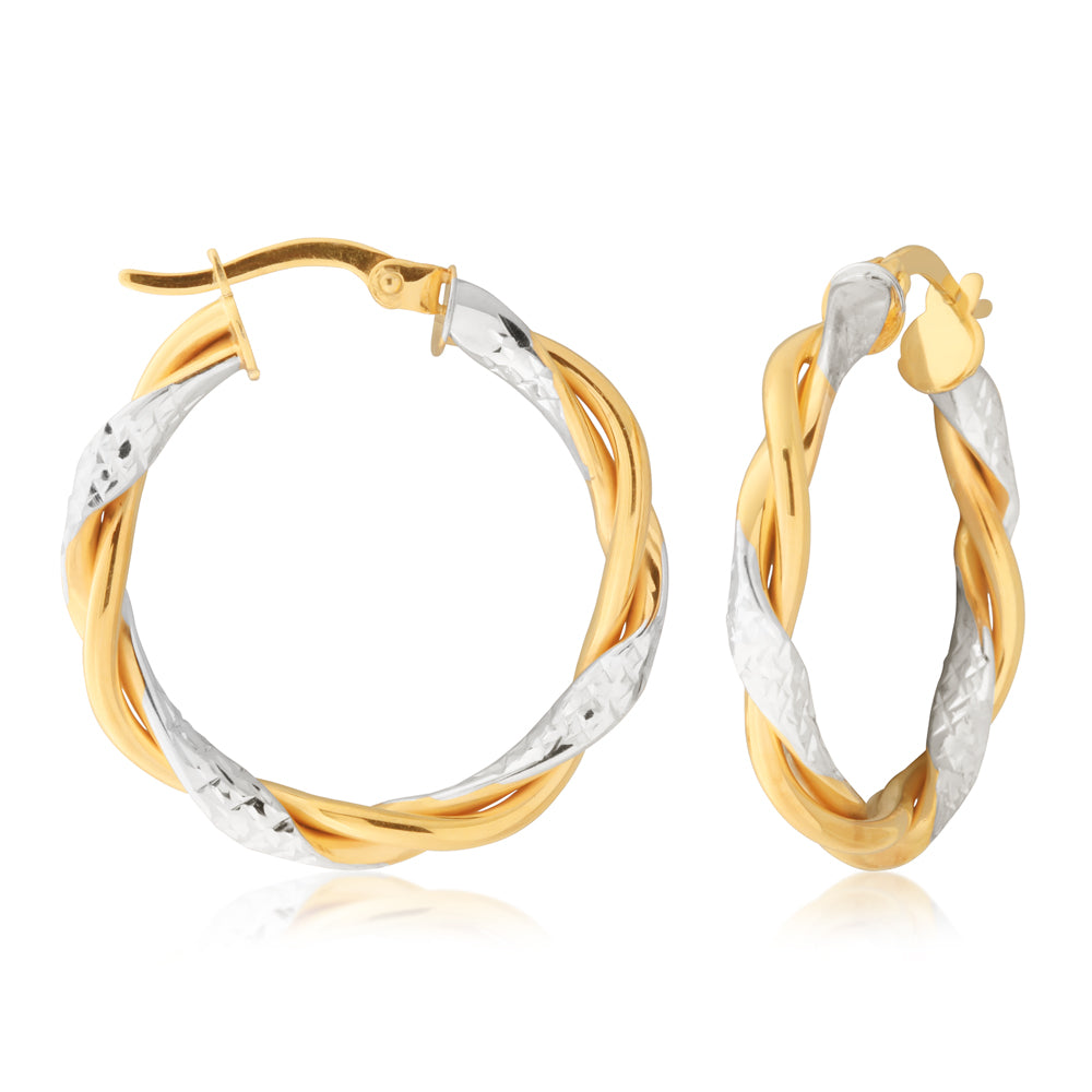 9ct Two-Tone Gold-Filled Diamond Cut Twist Hoop Earrings