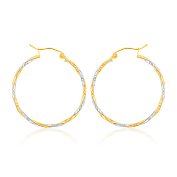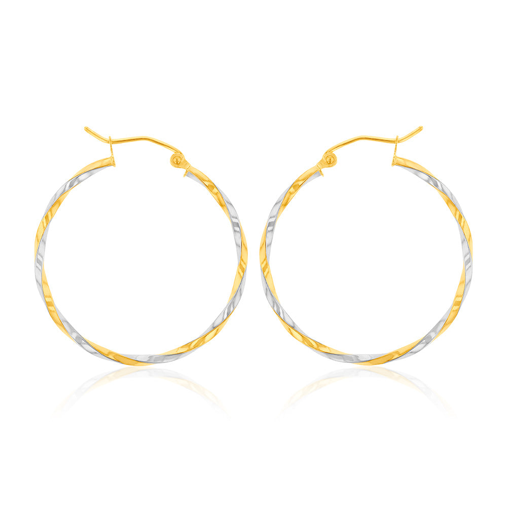 9ct Two Tone Gold High Polish Twist Hoop Earrings