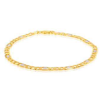 9ct White And Yellow Gold Silverfilled Figaro Curb With Greek Link 21cm Bracelet