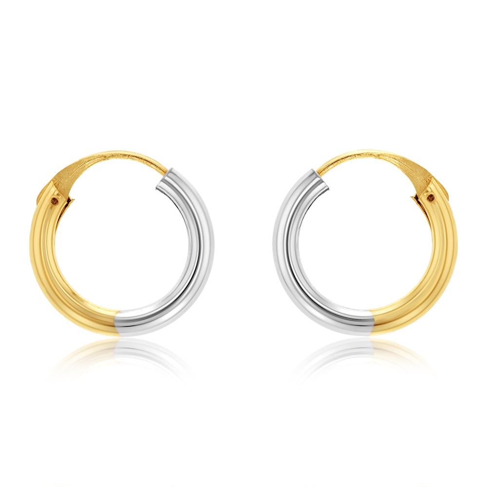 9ct White And Yellow Gold Two Tone 12mm Sleeper Earrings