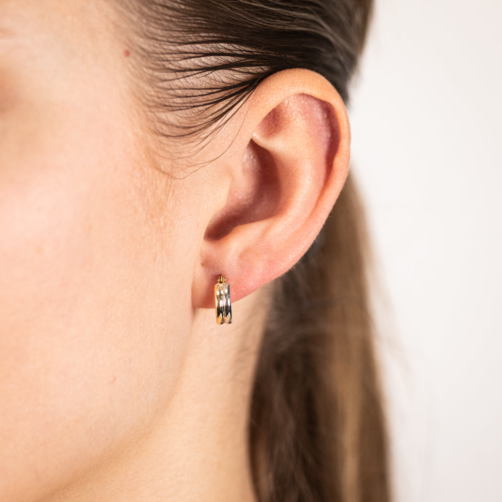 9ct White And Yellow Gold Two tone Fancy Hoop Earrings