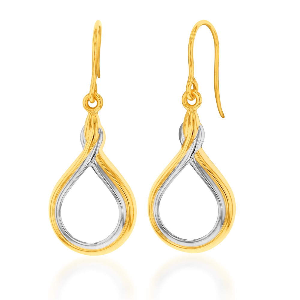 9ct White And Yellow Gold Two Tone Tear Drop Earrings