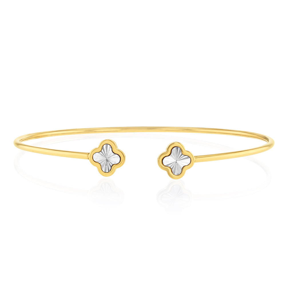 9ct White And Yellow Two-Tone Gold Flower Flex Bangle