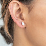 9ct White Gold 0.25ct Natural White Opal and Diamond Stud Earrings
