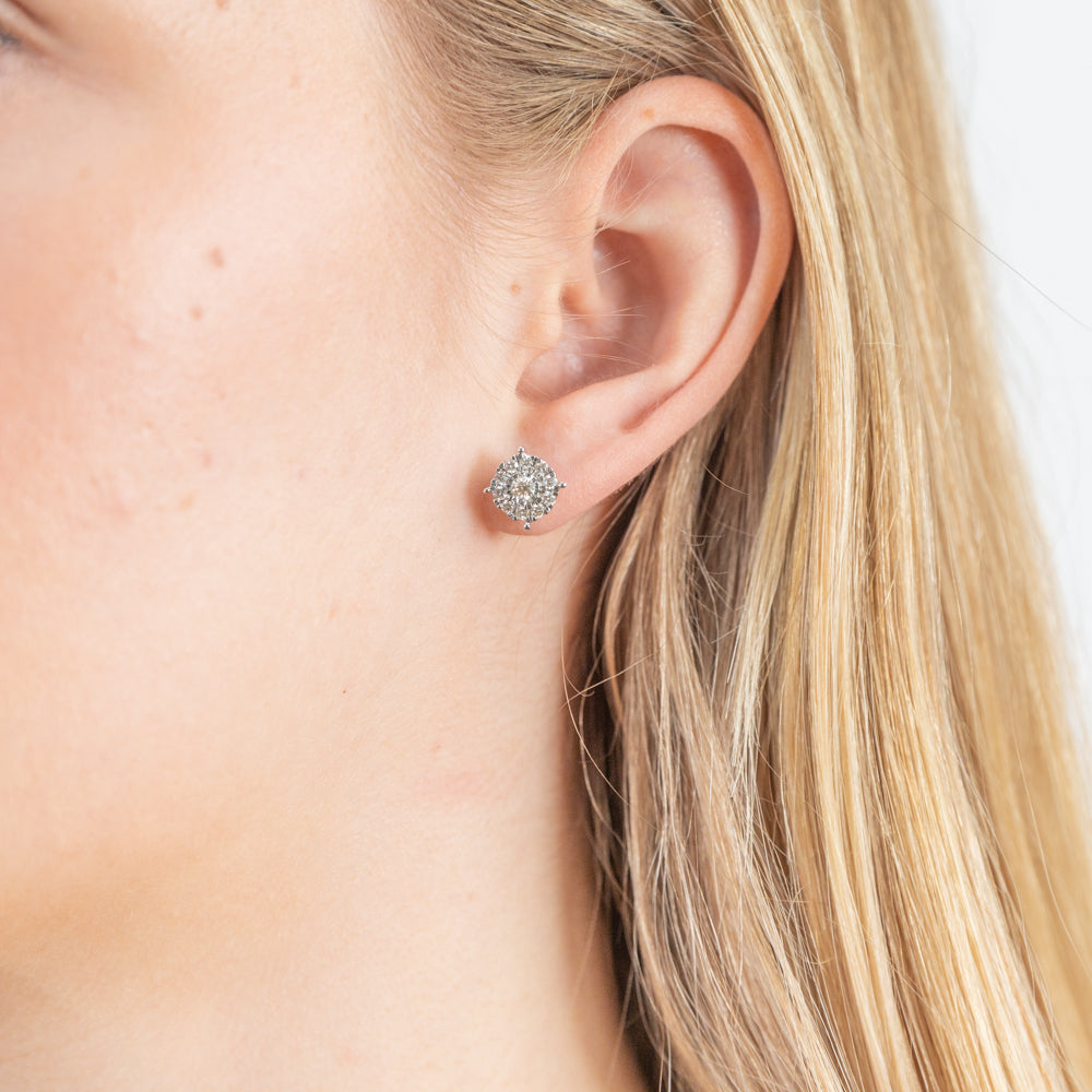 9ct White Gold 1/2 Carat Diamond Cluster Stud Earrings