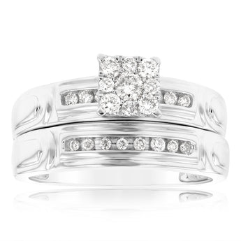 9ct White Gold 1/3 Carat Diamond Bridal Ring Set With 23 Brilliant Cut Diamonds