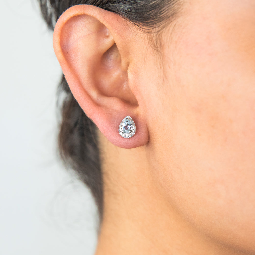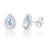 9ct White Gold 1/3ct Aquamarine and 0.15 Carat Diamond Pear Halo Stud Earrings