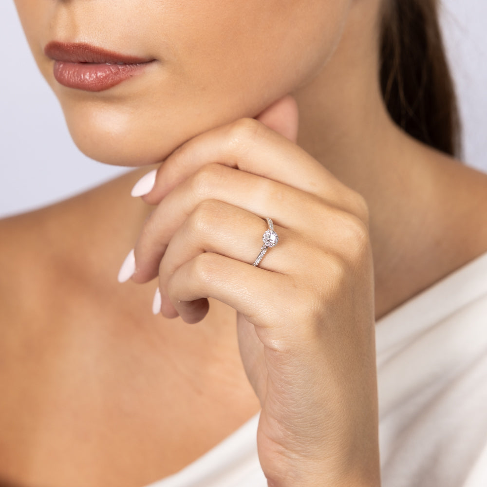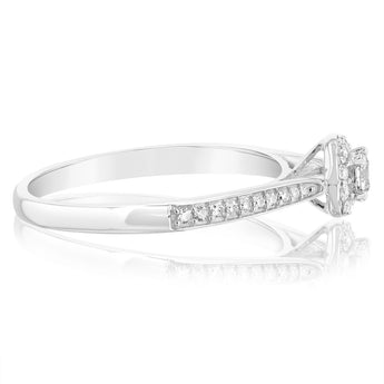 9ct White Gold 1/4 Carat Diamond Halo Solitaire Ring