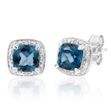 9ct White Gold 1.40ct London Blue Topaz and Diamond Stud Earrings