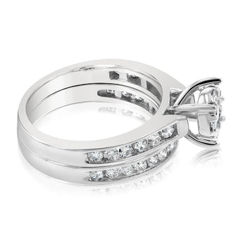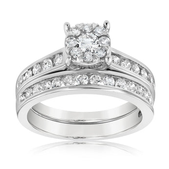 9ct White Gold 1 Carat Diamond Bridal Set Ring with Halo Setting