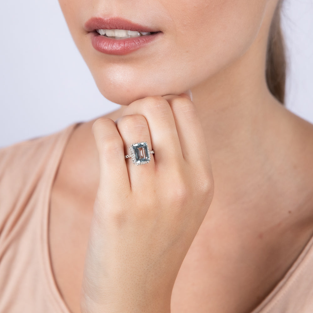 9ct White Gold 2.4ct Aquamarine and 1/3 Carat Diamond Ring