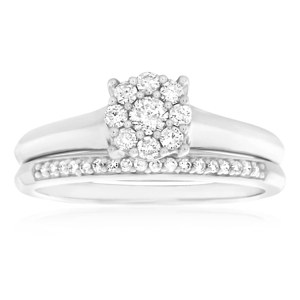 9ct White Gold 2 Ring Bridal Set With 1/3 Carats Of Brilliant Cut Diamonds