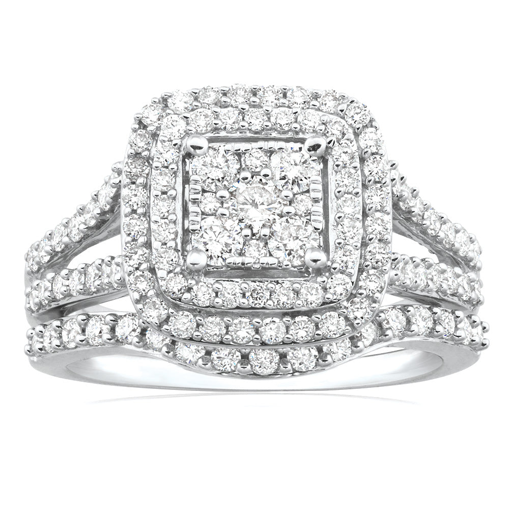 9ct White Gold 2 Ring Bridal Set With 1.2 Carats Of Diamonds
