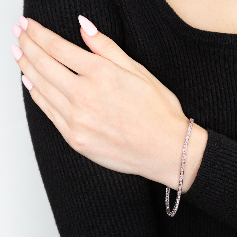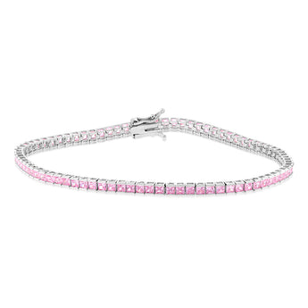 9ct White Gold 2mm Square Pink Cubic Zirconia 19cm Tennis Bracelet