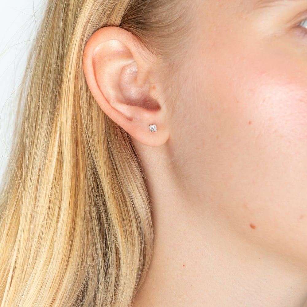 9ct White Gold 3mm Princess Cut Cubic Zirconia Stud Earrings