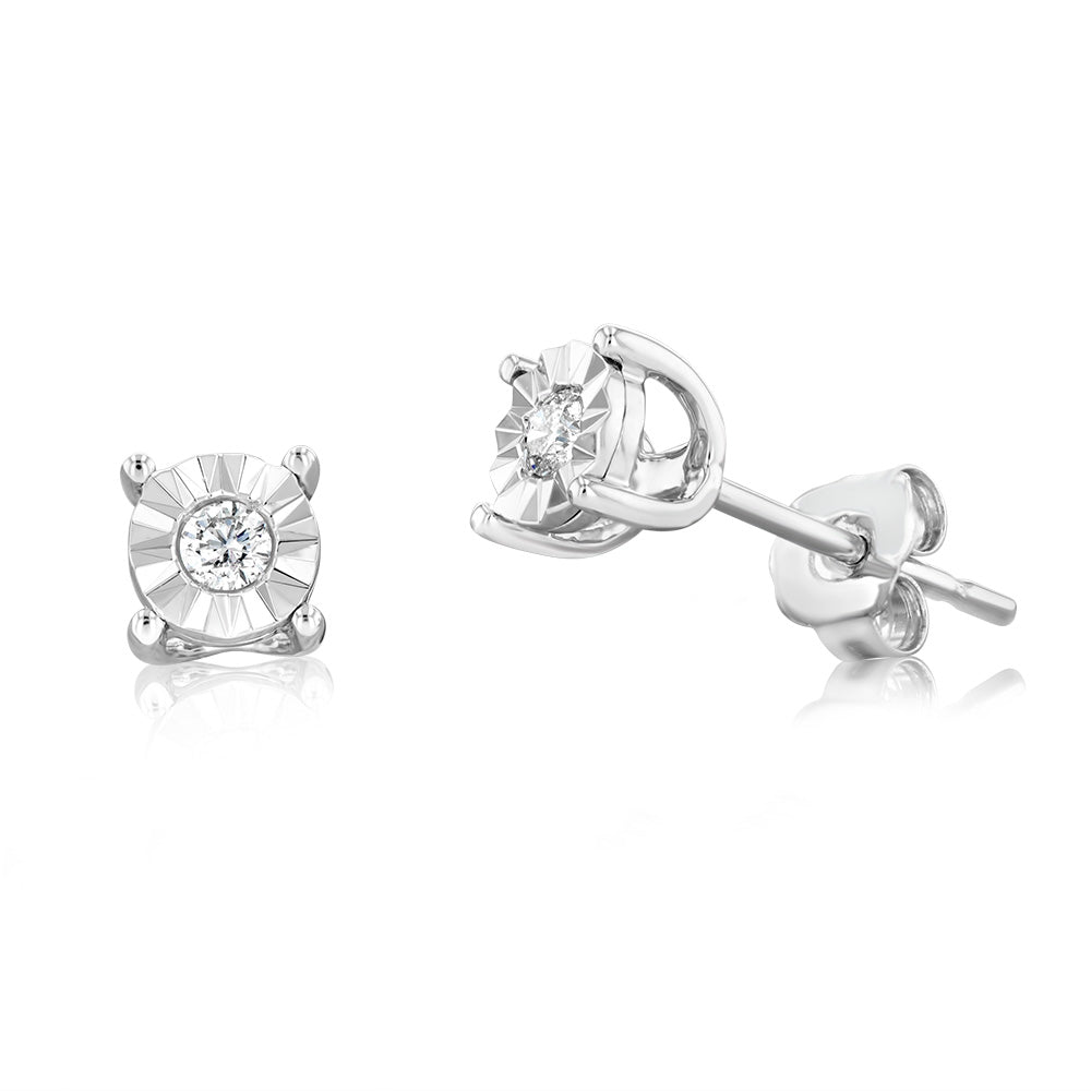 9ct White Gold 5 Points Diamond Stud Earrings