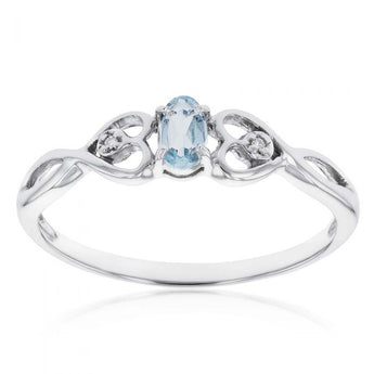 9ct White Gold 5x3mm Oval 0.21ct Aquamarine and Diamond Ring