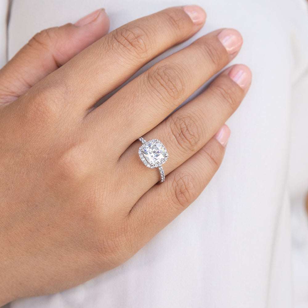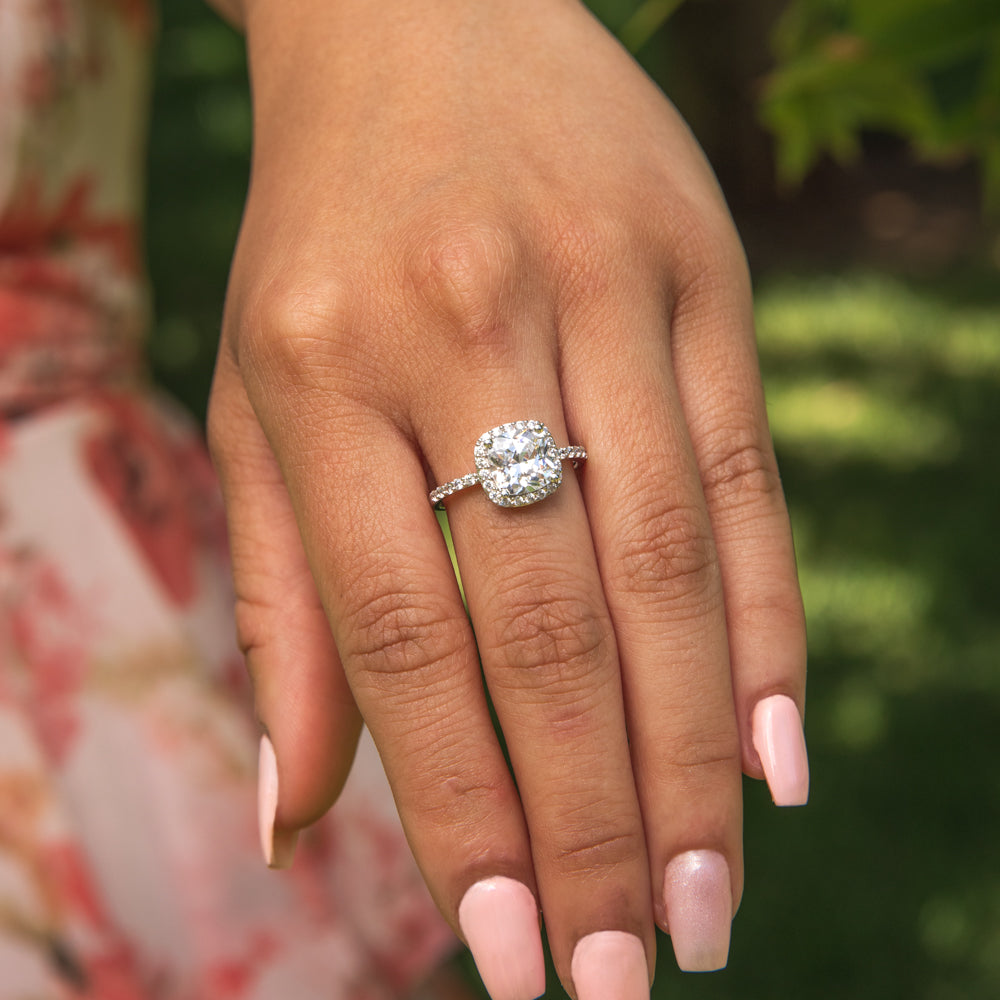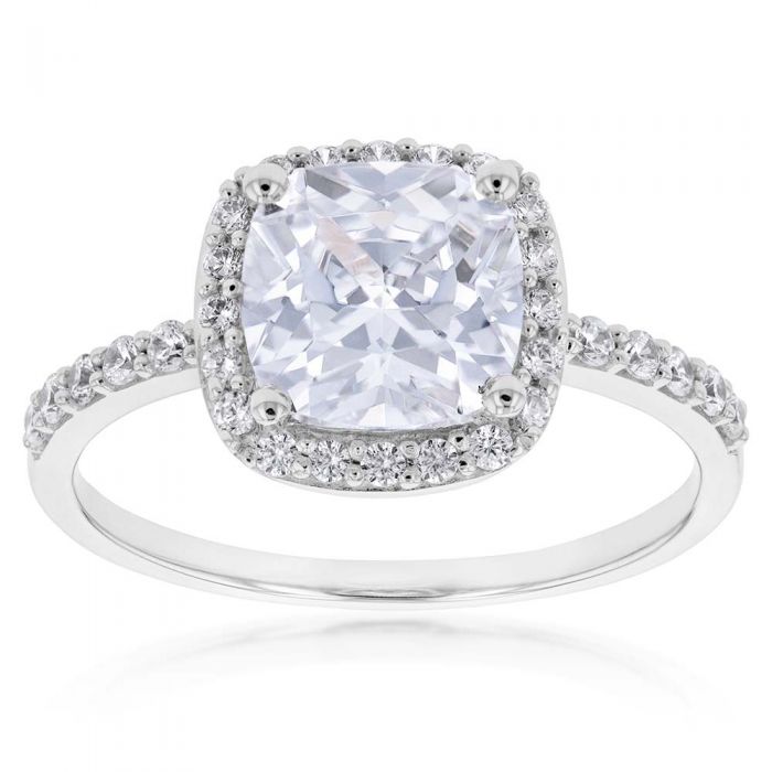 9ct White Gold 8mm Cushion Cut Cubic Zirconia Halo Ring