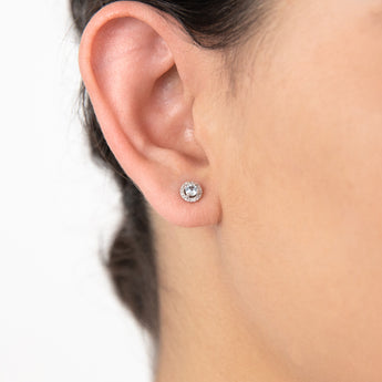 9ct White Gold Aquamarine and Diamond Halo Stud Earrings