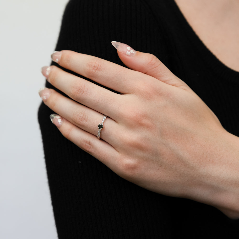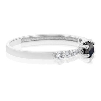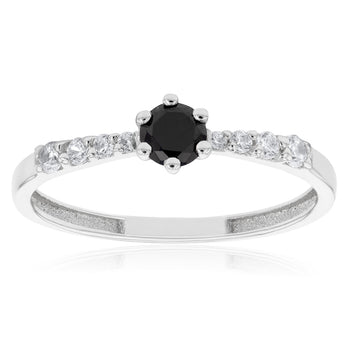 9ct White Gold Black Zirconia Solitaire Fancy Channel Ring