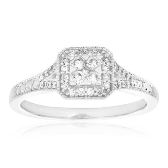 9ct White Gold Diamond Ring Set With 37 Beautiful Diamonds