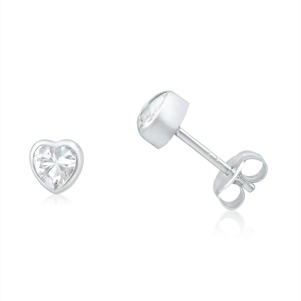 9ct White Gold Heart Cubic Zirconia Stud Earrings