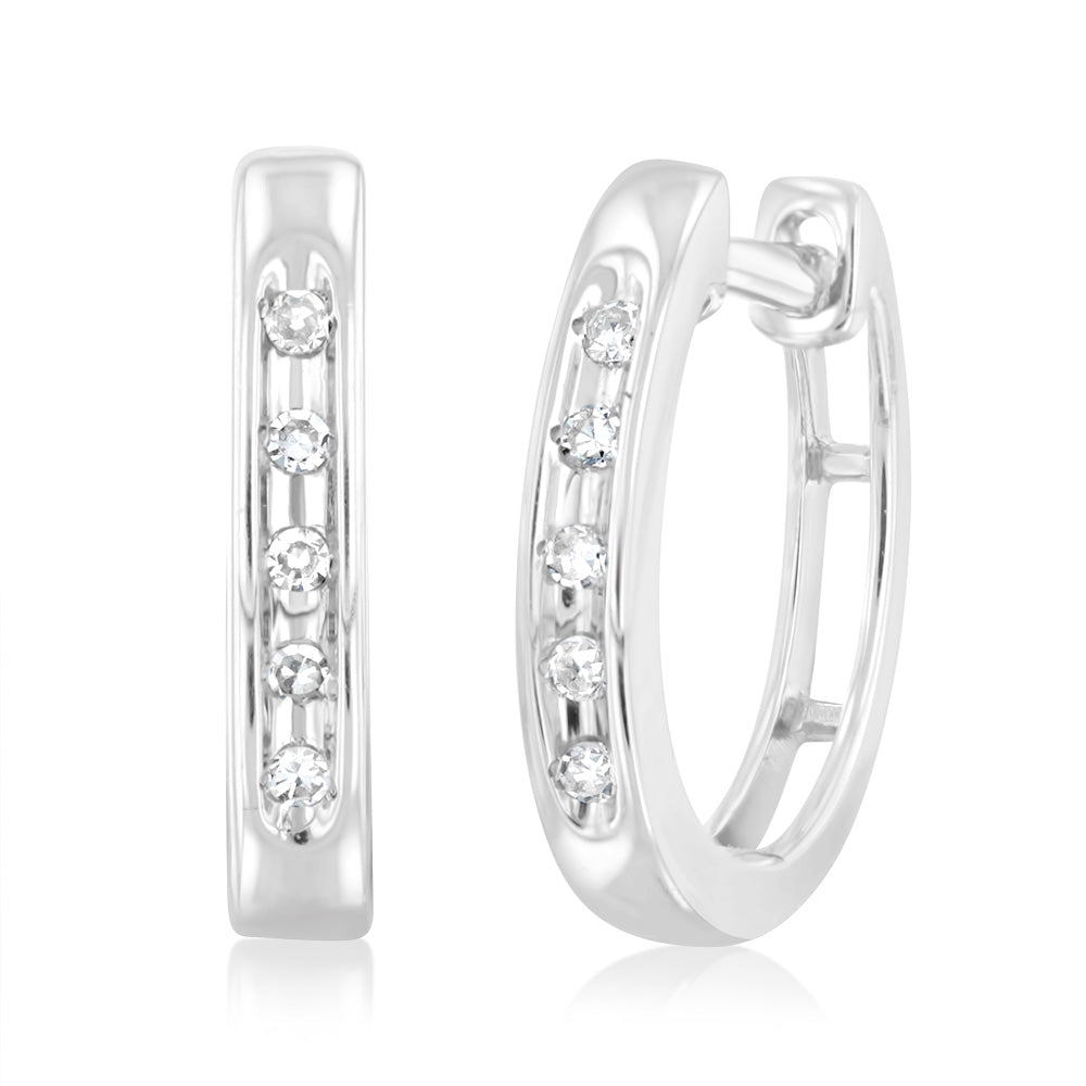 9ct White Gold Hoop Earrings with 20 Brilliant Diamonds