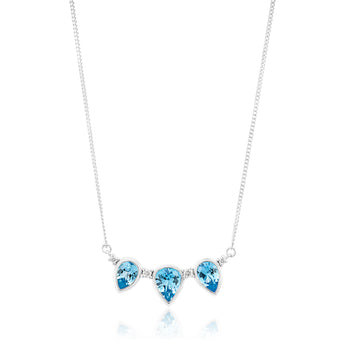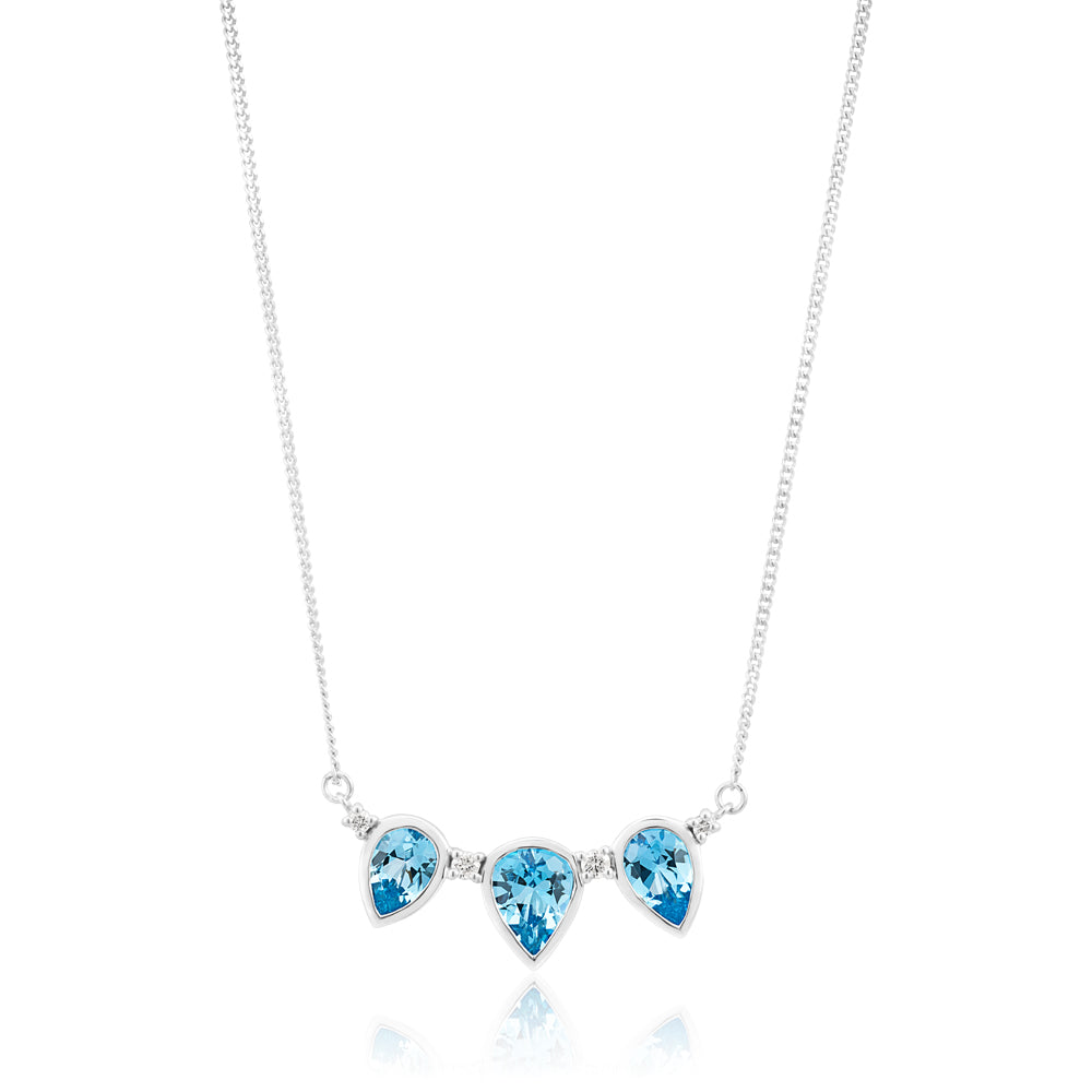 9ct White Gold Light Swiss Blue Topaz Teardrop Trio and Diamond Set Chain 40cm