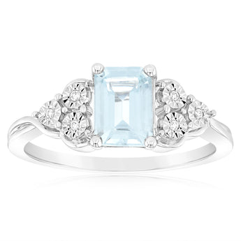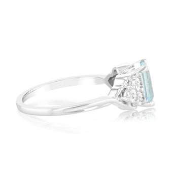 9ct White Gold Natural Aquamarine And Diamond Ring