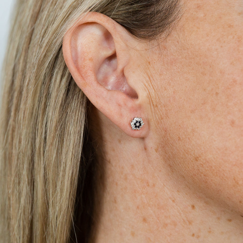 9ct White Gold Natural Sapphire and Zirconia Flower Studs