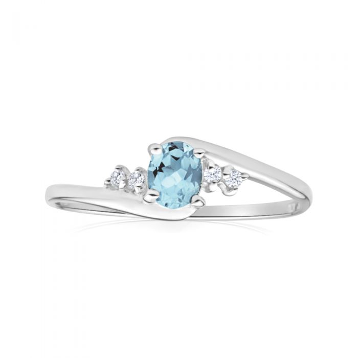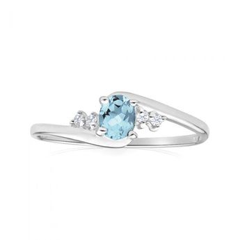 9ct White Gold Oval Cut Blue Topaz + Cubic Zirconia Ring