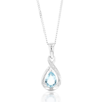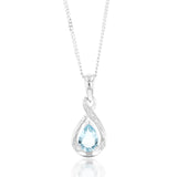 9ct White Gold Pear Shaped Aquamarine + Diamond Pendant