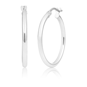 9ct White Gold Plain 20mm Hoops