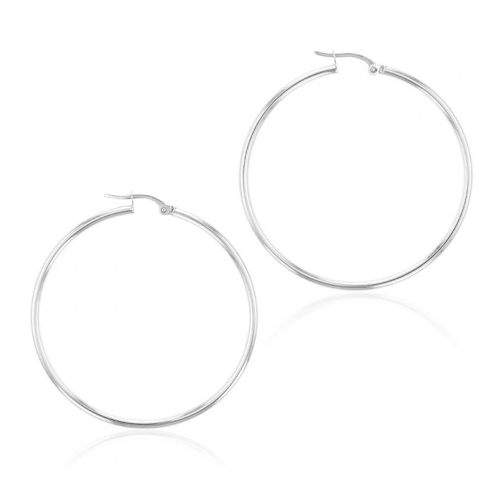 9ct White Gold Plain 40mm Hoops