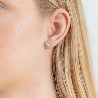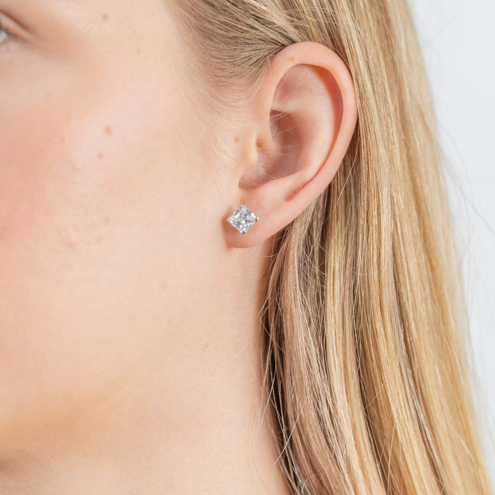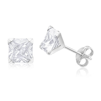 9ct White Gold Princess Cut 6mm Cubic Zirconia Stud Earrings