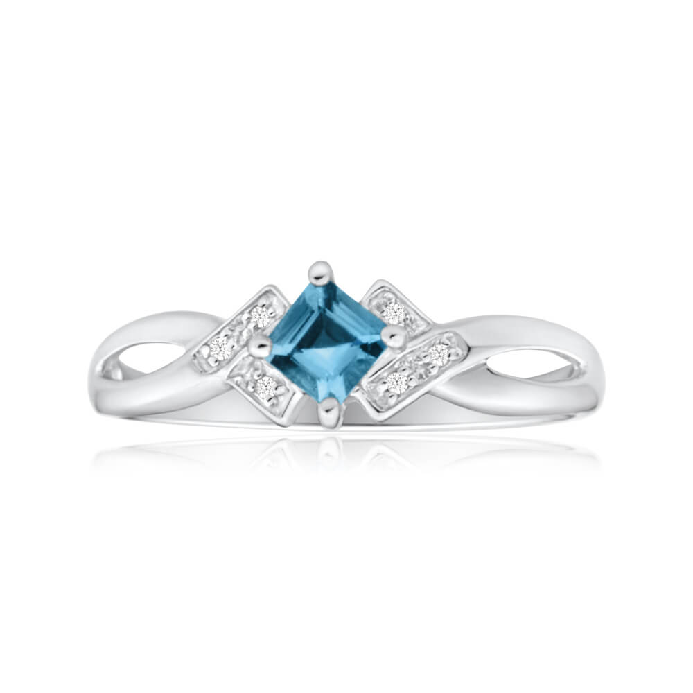 9ct White Gold Princess Cut Aquamarine + Diamond Ring