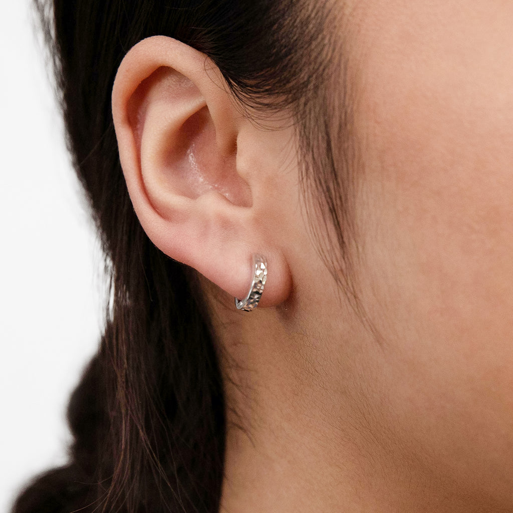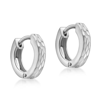 9ct White Gold Pyramid Creole Earrings