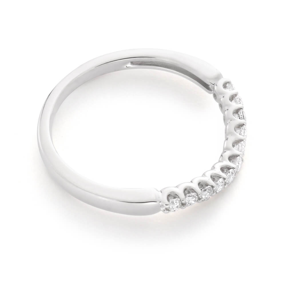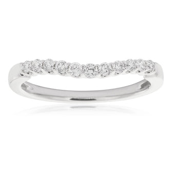 Looking for that special ring for a loved one? Then this piece is just for you. This beautiful and simple 9ct White Gold Ring With 0.25 Carats Of Diamonds is just perfect to mark any occasion in your life and make it memorable. This exquisite piece of jewellery speaks of your love and care towards your partner or treat yourself with something special this season. The curved shape is perfect for stacking, or make it a statement piece on it’s own.