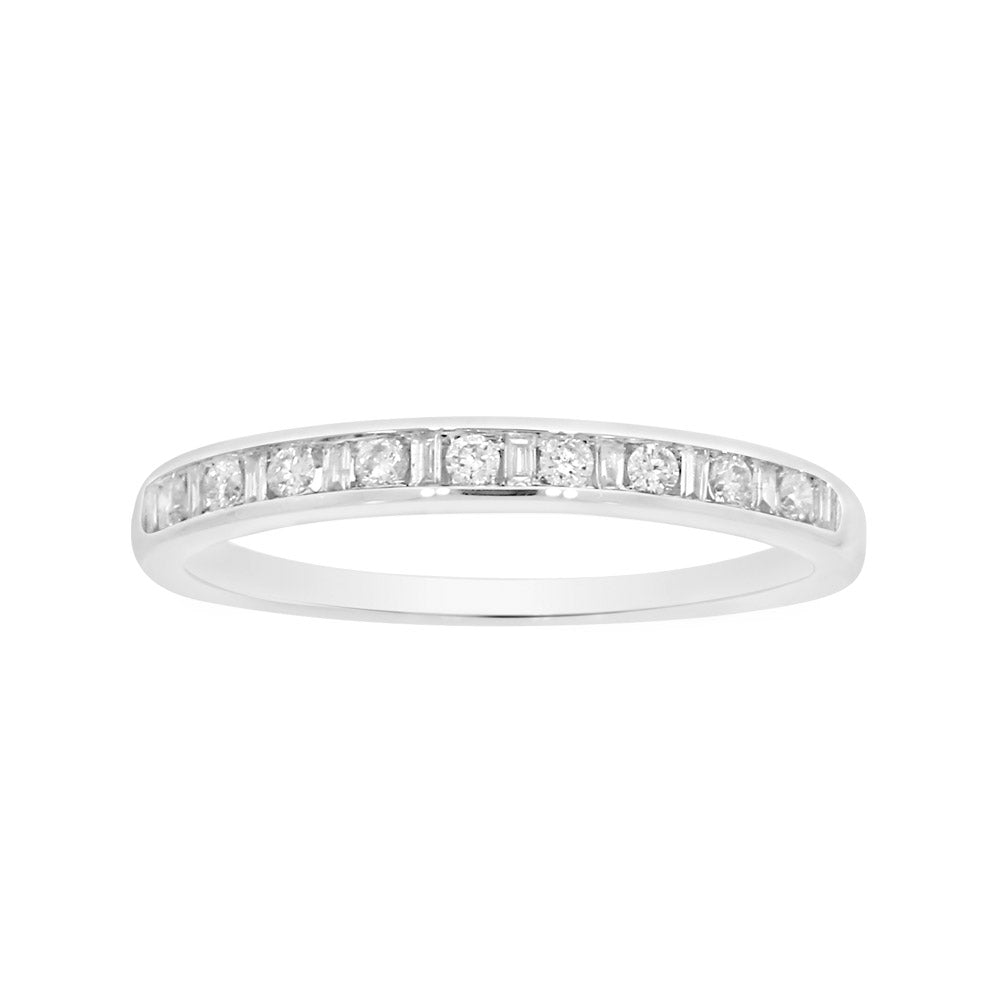 9ct White Gold Ring with 1/4 Carat of 9 Brilliant Diamonds and 10 Baguette Diamonds
