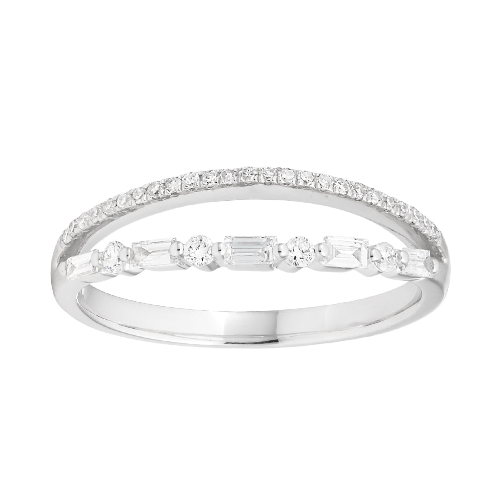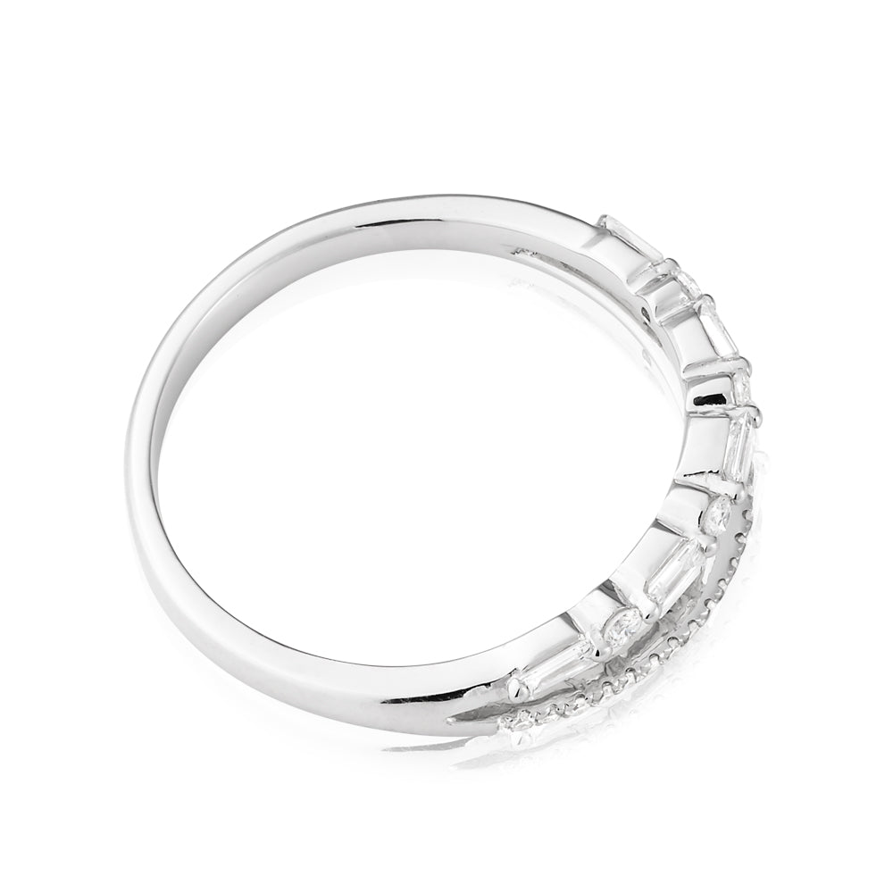 9ct White Gold Ring with 1/4 Carat of Brilliant and Baguette Diamonds