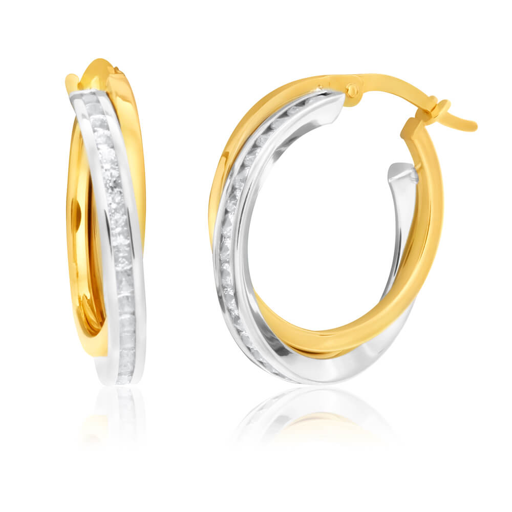 9ct White Gold Silver Filled Cubic Zirconia Hoop Earrings