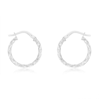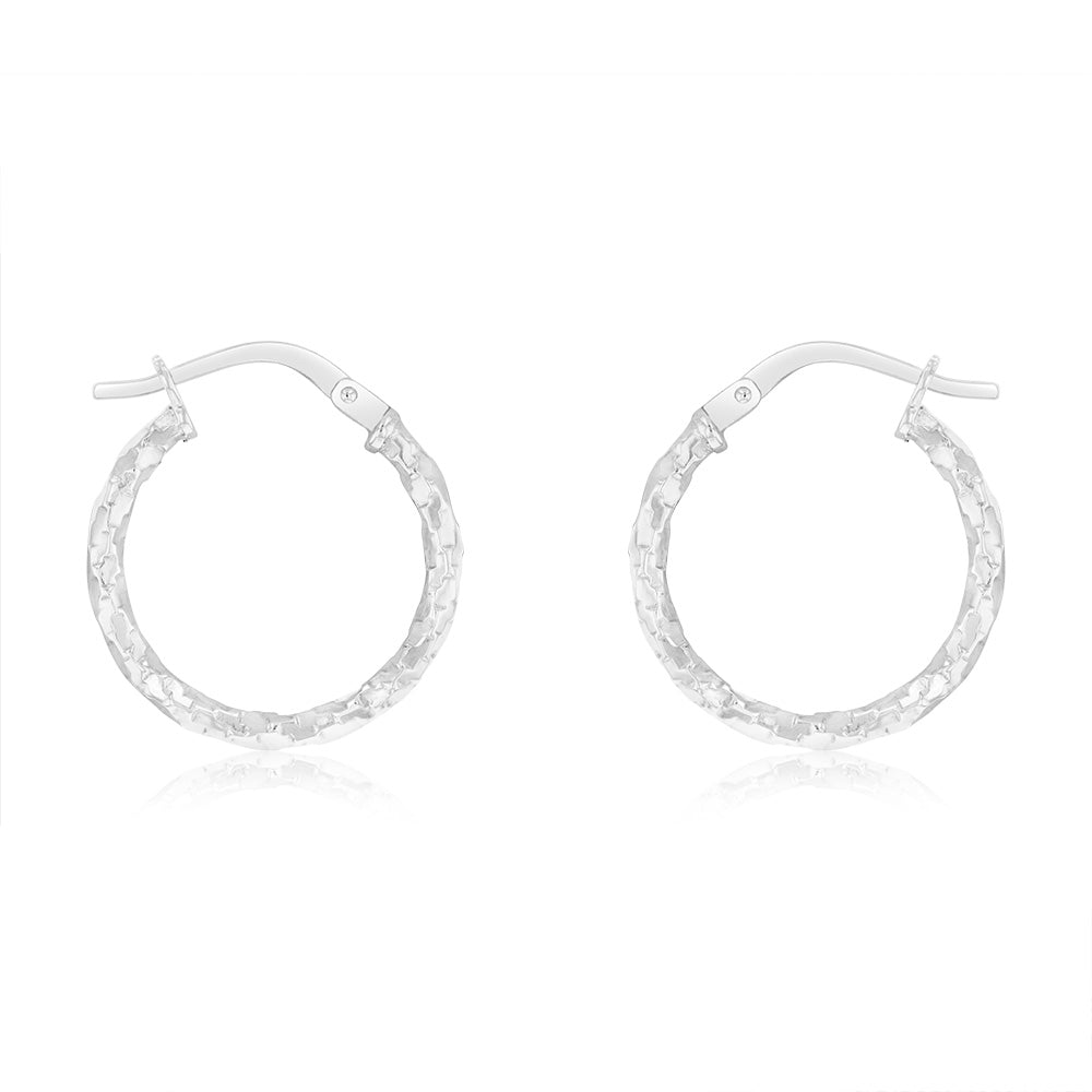 9ct White Gold Silver-Filled Fancy Twisted 15mm Hoop Earrings