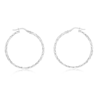 9ct White Gold Silverfilled Fancy Twisted 30mm Hoop Earrings