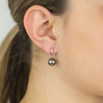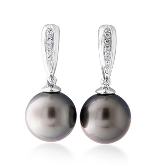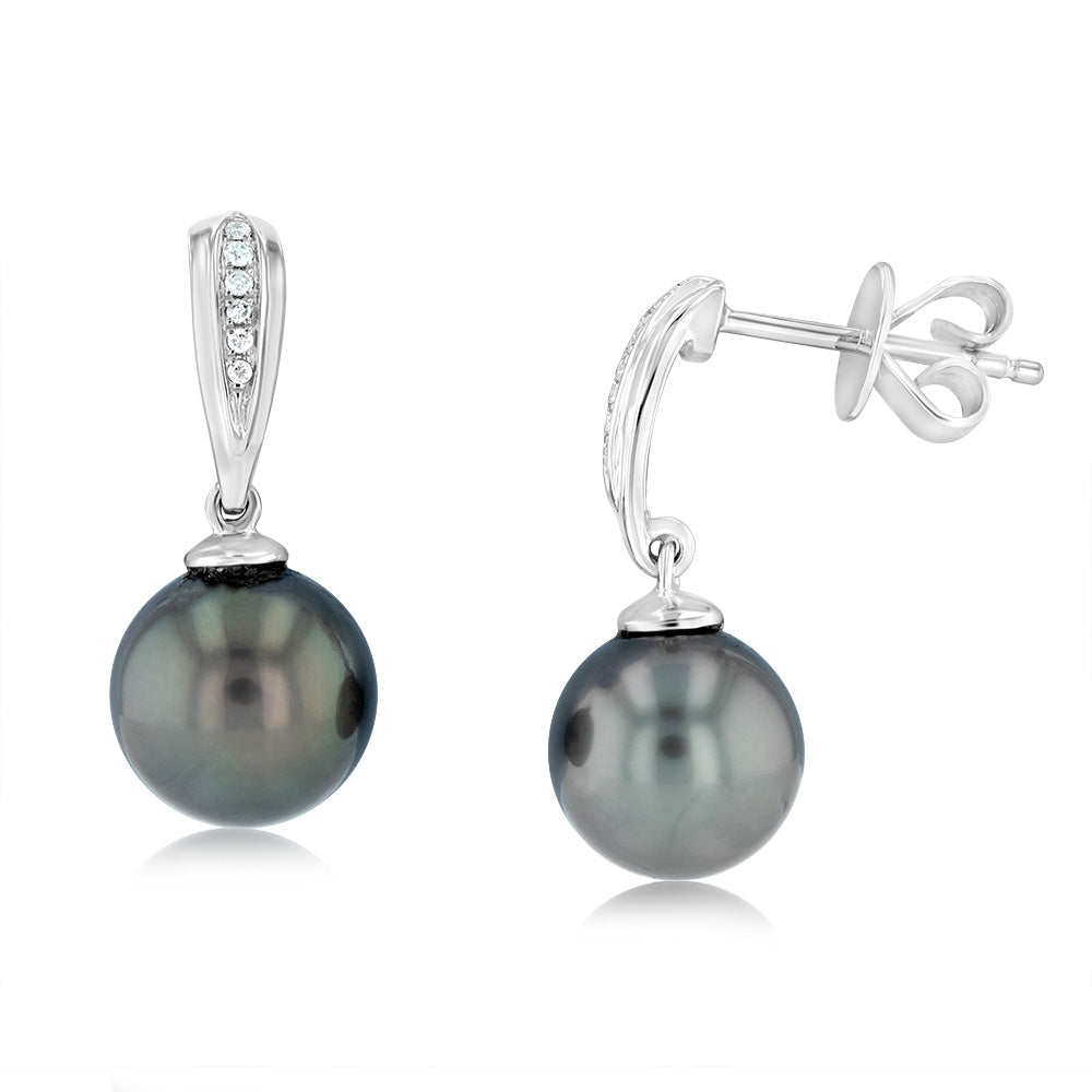 9ct White Gold Tahitian Pearl & Diamond Drop Earrings