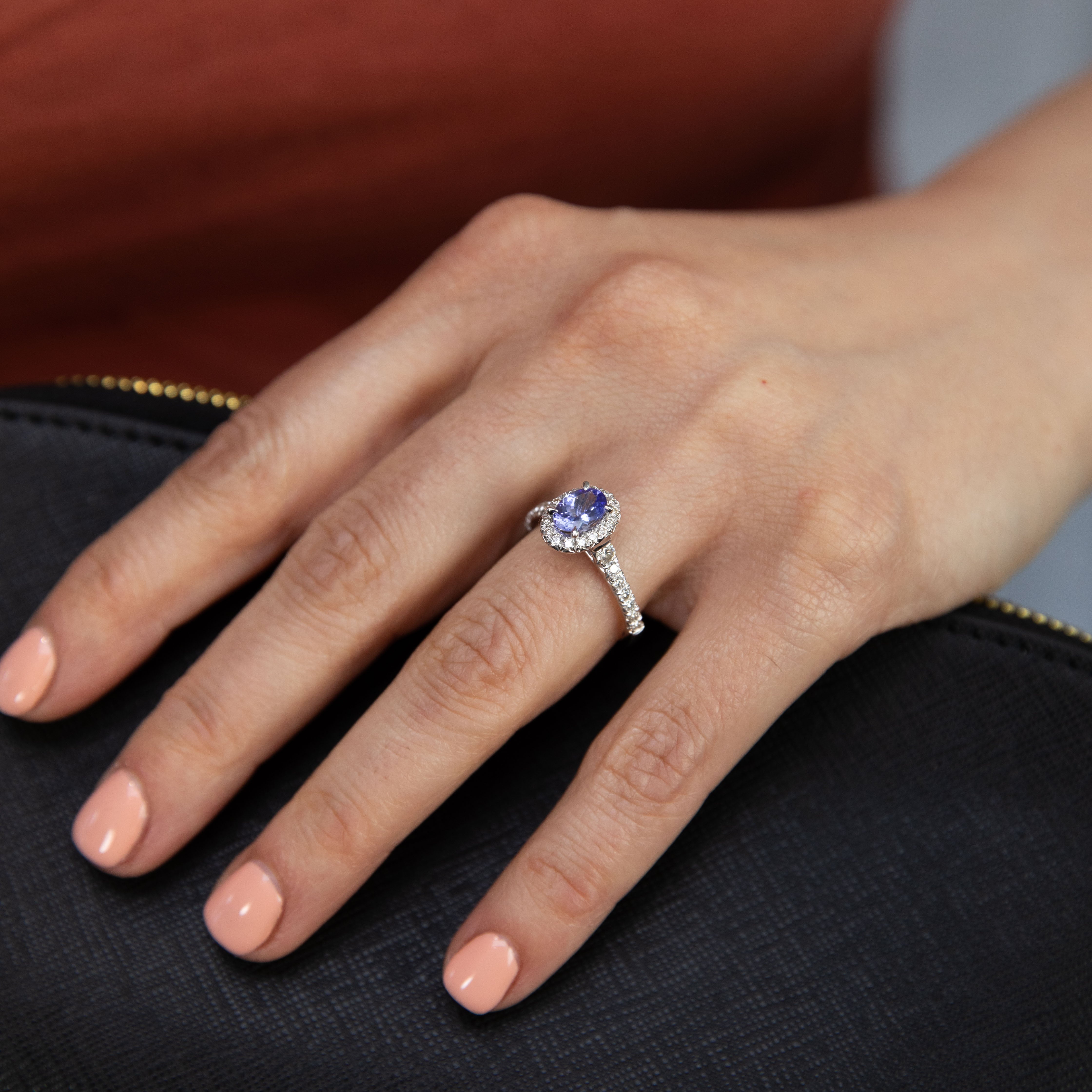 9ct White Gold Tanzanite and Diamond Oval Halo Ring