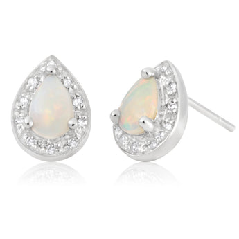9ct White Gold White Opal and Diamond Pear Stud Earrings