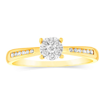 9ct Yellow 1/4 Carat Round Cluster Diamond Ring