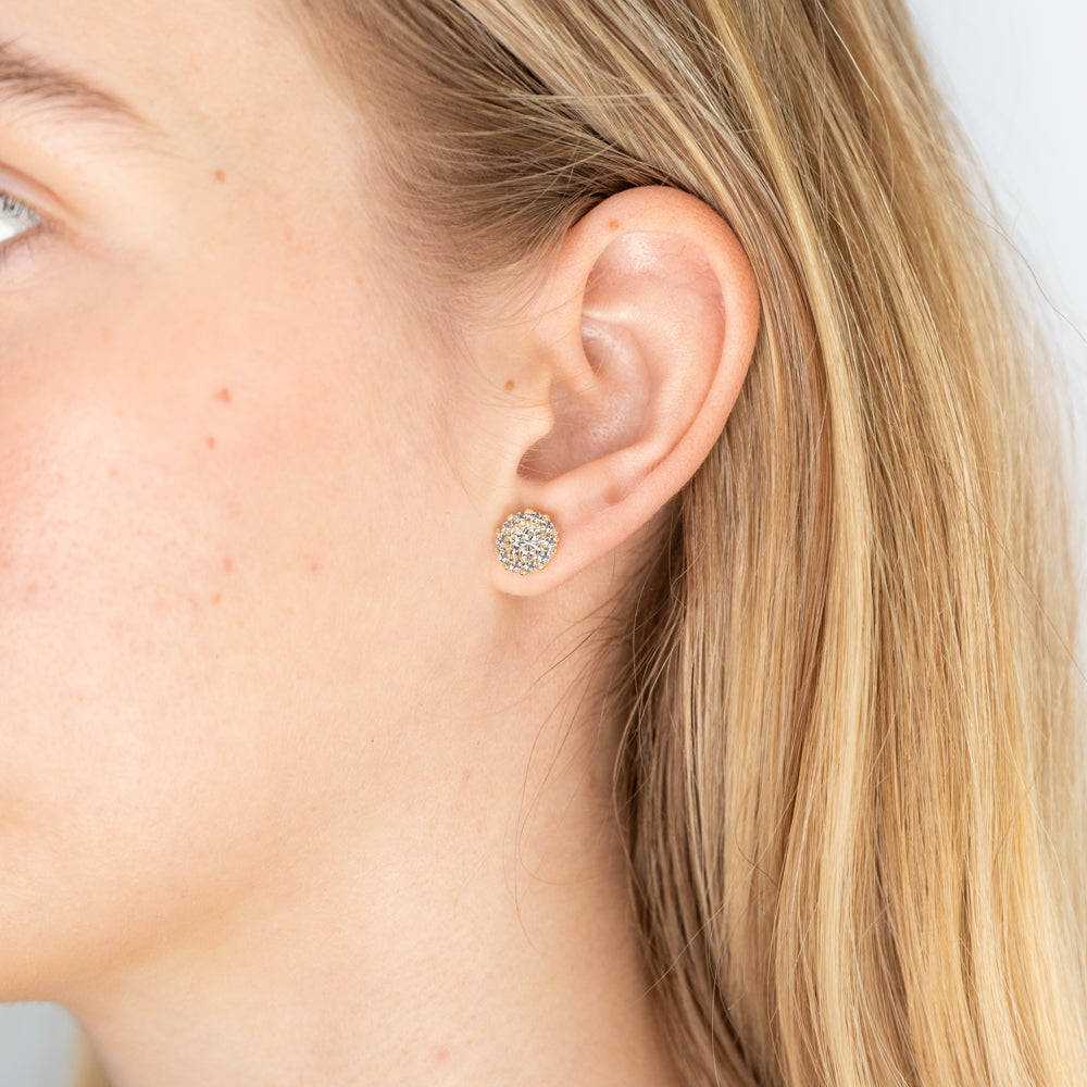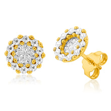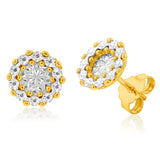 9ct Yellow And White Gold Diamond Cut Round Stud Earrings